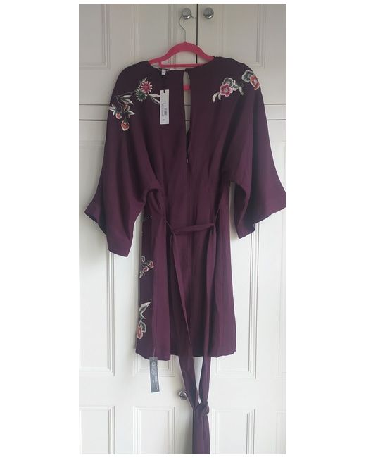 A simply gorgeous, versatile mini length dress. Designed in a flattering, kimono inspired style by Matthew Williamson @ Debenhams. Beautifully embroidered, fully lined & with a long waist tie/belt.