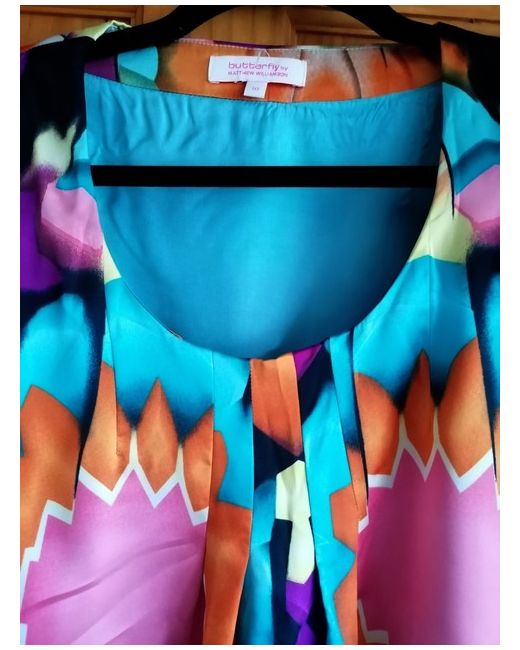 This Matthew Williamson dress in size 10 features a colourful design on a short satin A-line silhouette. With a round neckline, short sleeves, and a pullover style, this dress is made from polyester and is in excellent condition. Fully lined with 100% turquoise acetate lining.