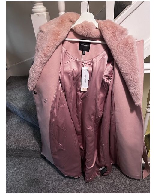 Forever New Faux Fur Midi Coat. Powder pink brand new with tags original retail price £120. Size 14. Beautiful coat, removable fur collar and cuffs.