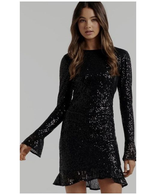 Introducing the stunning Forever New Daphne Draped Flutter-Sleeve Sequin Mini Dress in size 8. This beautiful dress is perfect for any occasion, whether you're attending a wedding or a night out with friends. The dress features a flattering draped design with flutter sleeves and is adorned with shimmering sequins that will make you stand out from the crowd. The dress is made from high-quality materials and is designed to be comfortable to wear all night long. The black colour of the dress is perfect for any event and can be paired with heels or flats depending on your preference. Get ready to turn heads and make a statement with this gorgeous dress from Forever New.