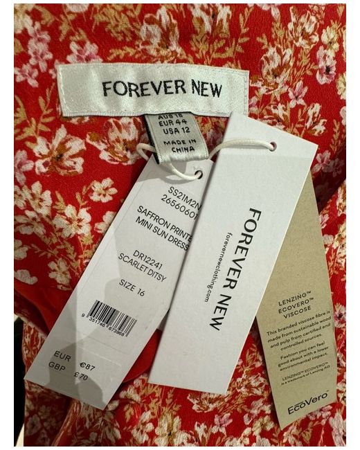 Get ready to dazzle in this gorgeous Forever New dress! Perfect for any party or cocktail event, this stunning red mini dress is sure to turn heads. The dress features a long hemline and is designed to flatter any body type. Made with high-quality materials, this dress is built to last and will be a staple in your wardrobe for years to come. The dress is a size 16, and is perfect for women of any size. The beautiful red colour is eye-catching and will make you feel confident and elegant. Add this dress to your collection today and be the belle of the ball!