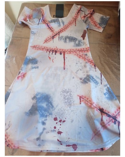 brand new with tag short sleeve skater style dress with faux stitches.great for Halloween party!
