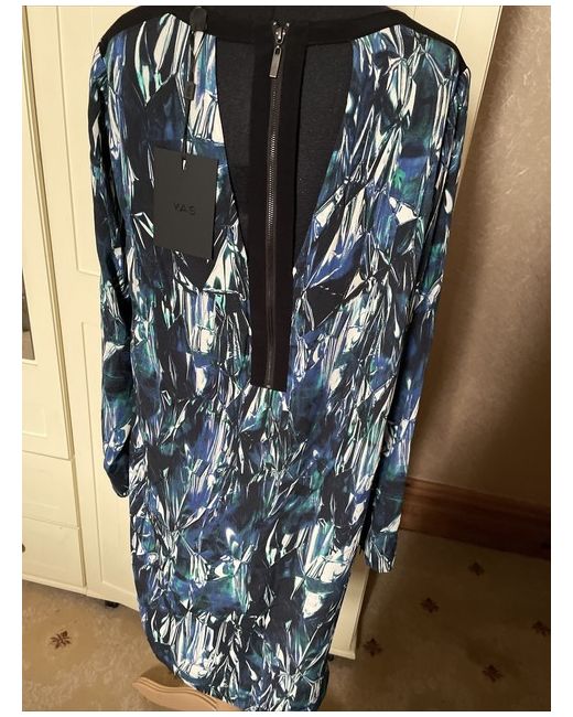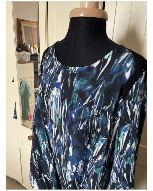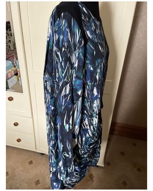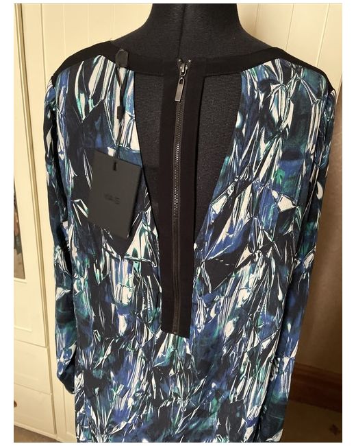 Women's Blue . Melt Patterned Long Sleeve Knee Length Shift Dress 12 NEW