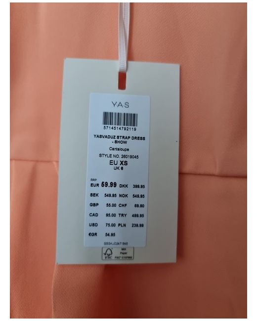 YAS Maxi dress in size XS/6 brand new with tags. Canteloupe colour with adjustable straps