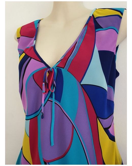 Abstract Multicoloured Patterned Top UK 10 V-Neck Lined New