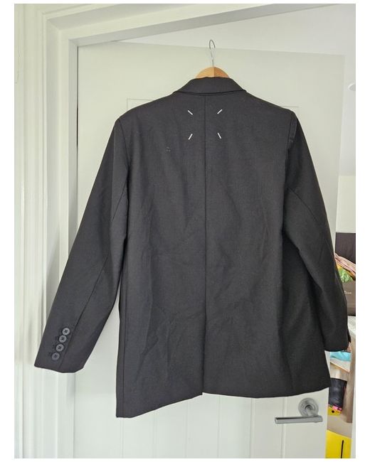 I'm not sure of authenticity, that's why this price is. The Maison Margiela Oversized Blazer is a stylish and versatile addition to any woman's wardrobe. Made from black cotton, this oversized blazer exudes a modern and edgy vibe. With a regular fit and size XS, it is designed for a comfortable and flattering silhouette. The classic blazer style is updated with a contemporary twist, making it perfect for both casual and formal occasions. Pair it with jeans for a cool and effortless look, or dress it up with trousers for a more polished ensemble. The Maison Margiela brand ensures high-quality craftsmanship and impeccable style.