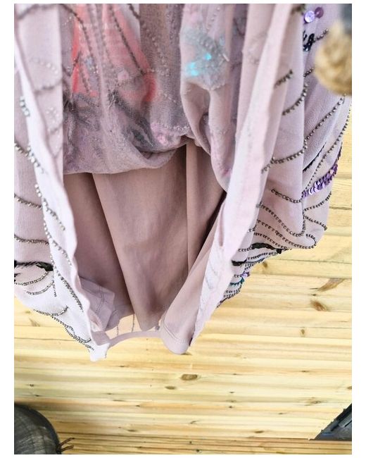 Ladies Peach Mesh Top 3/4 Sheer Sleeves Sequin Hearts 8 Bnwt