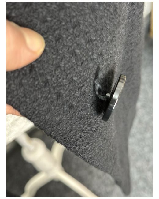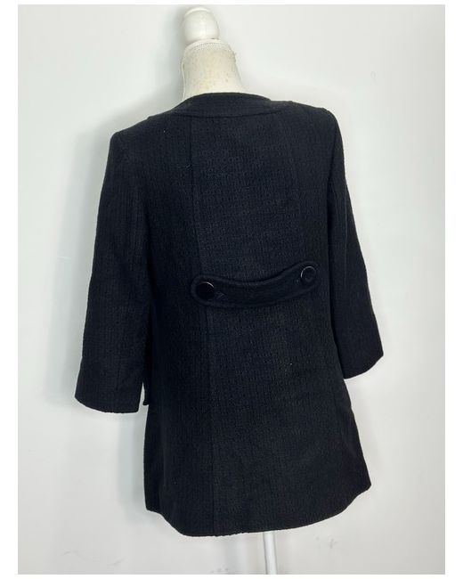 Colour Black Sleeves:3/4 Neck round This Love Label black button front jacket for women is made of a cotton blend with a floral pattern. It features long sleeves, a mid-length cut, and a regular fit in size 10 Slim. The jacket has a lightweight design with polyester insulation, a polyester lining, and button accents. It also includes pockets for added convenience. DEFECT: THREAD COMING AWAY FROM THE BUTTON PLEASE CHECK PICTURES