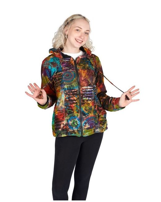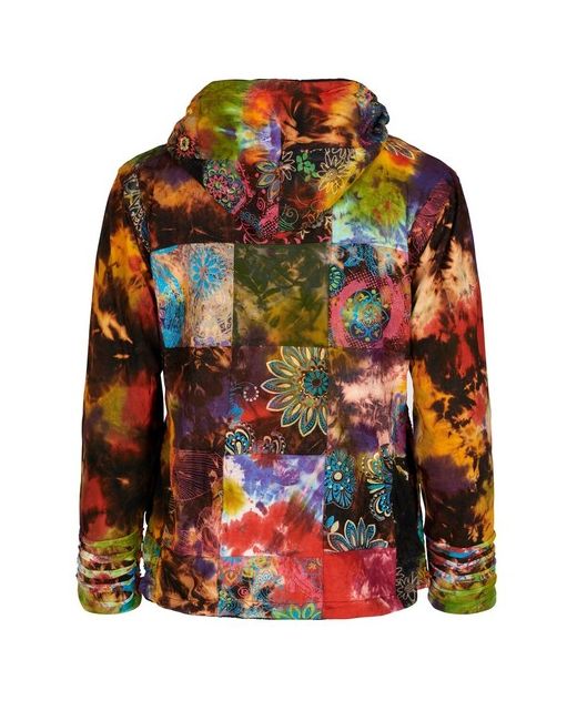Here’s a glorious patchwork hippie hooded jacket with a difference! The result is a blaze of colour, a feast of texture, a stand-out hoodie you’ll love to wear. It’s lined with fleece for extra warmth and a lovely, soft feel, has a unisex fit, a classic rounded hood and drawstring, plus a pocket either side.