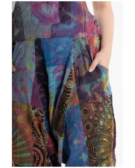 Oh, how gorgeous are these! If, like plenty of other people, you have been seduced by the comfy, funky pleasure of harem trousers, you're going to love these. Our stunningly vivid tie dye patchwork harem dungarees with pockets are made from lovely, comfortable, bright non stretchy cotton, a complex patchwork of gorgeous overdyed printed fabrics designed to bring a smile to your face.