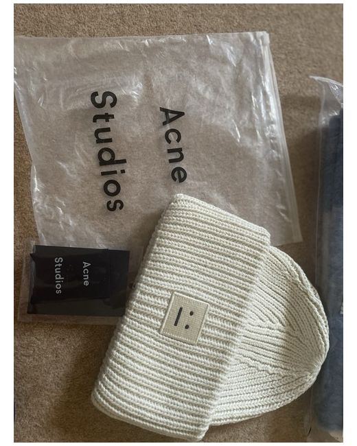Elevate your winter wardrobe with this stylish Acne Studios scarf and beanie set. Crafted from high-quality wool, this knit accessory set is perfect for keeping you warm and fashionable during the colder months. The beige colour is versatile and easy to match with any outfit, while the unique design of the beanie adds a touch of elegance to your look. Ideal for women of all sizes, this one-size set is a must-have for any fashion-forward individual. Whether you're running errands or attending a formal event, this scarf and beanie set is sure to make a statement. Don't miss out on the opportunity to add this chic accessory to your collection.