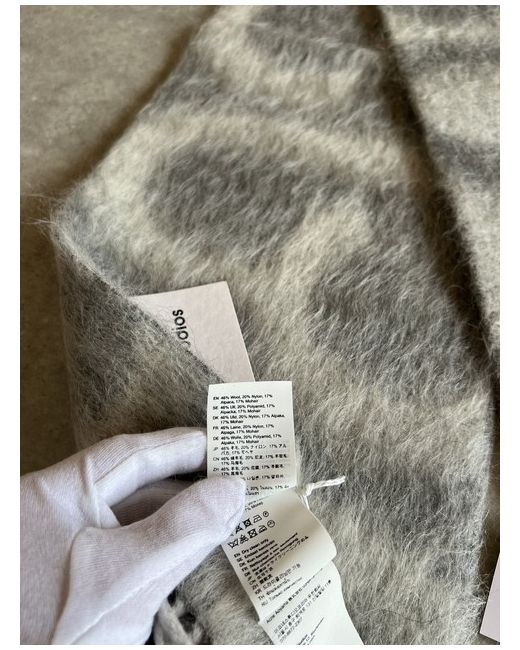 • Materials: 46% Wool, 20% Polyamide, 17% Alpaca, 17% Mohair. Fringe scarf features an all over logo, crafted from a softy hairy wool and alpaca blend. • Logo Animation. • Dry Clean. • Made in Italy.