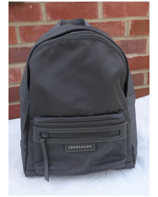 No longer made by Longchamp. Includes dust bag and green care card. Gorgeous dark grey colour with leather trim. Main zipped section plus internal zipped pocket. Front zipped pocket also. Good size - 33cm x 30cm x 9cm (base).