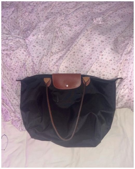 This is a brand new black Longchamp large tote bag for women. Made from nylon with leather handles/straps, it features inner pockets and black hardware. The bag is suitable for casual occasions and has a modern design.