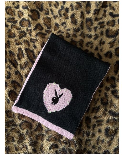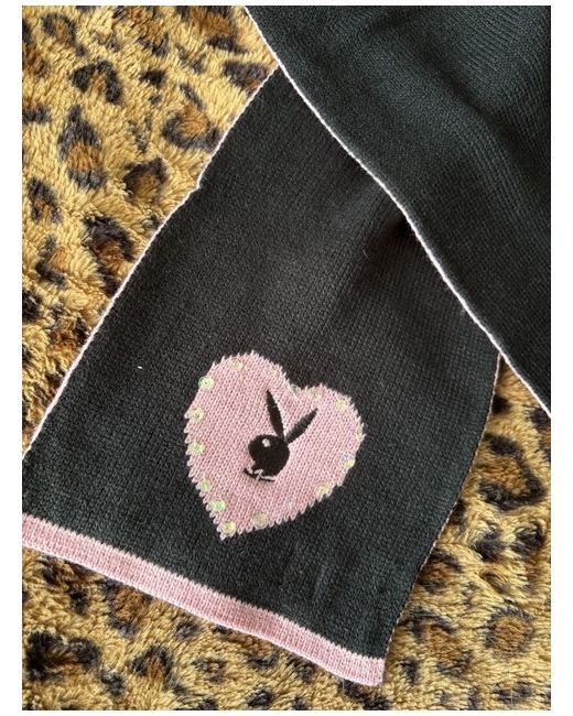 fairly new playboy scarf in pink and black some discolouration from the sun however other than that, good condition
