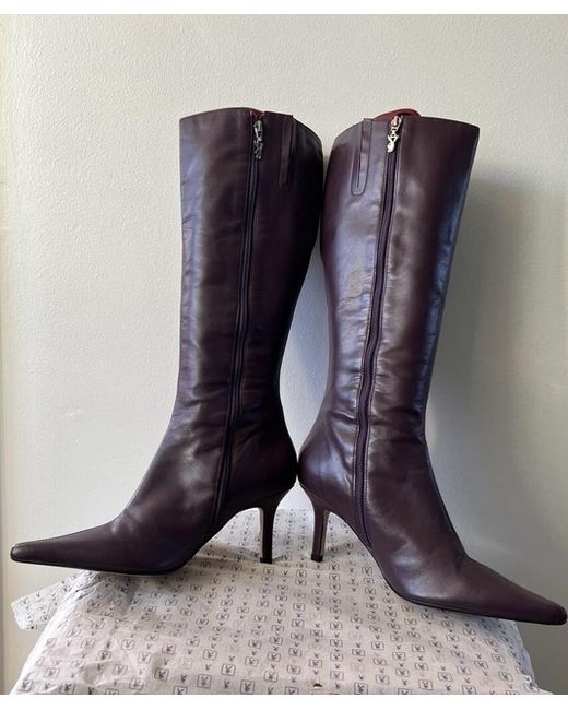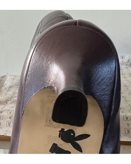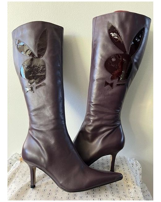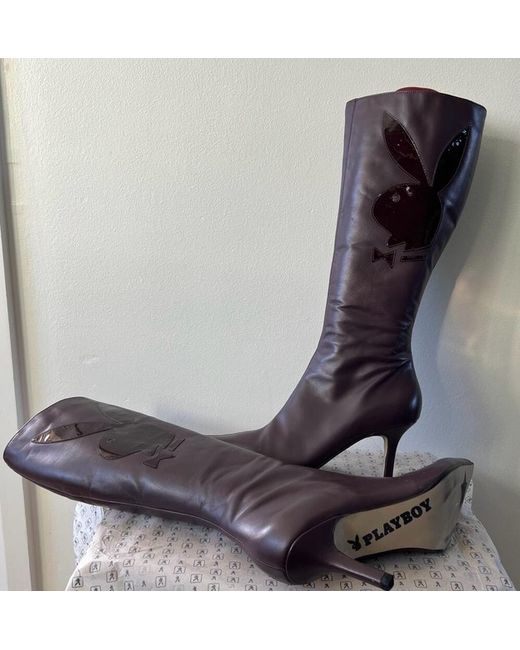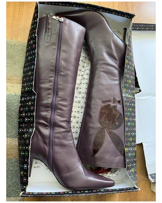 Introducing these stylish Playboy boots in a vivid shade of purple. Crafted for women, these boots are perfect for adding a pop of colour to your outfit. The brand, Playboy, is known for its quality and style, making these boots a must-have addition to your shoe collection. The boots feature a classic design and are made with high-quality materials for durability and comfort. The purple colour adds a chic touch to any outfit and is perfect for any occasion. These boots are perfect for women of all ages and are sure to turn heads wherever you go. Purple Playboy Boots in size 8- never been worn except when tried on in shop. Box tatty and bit broken but boots perfect. UK Buyers only . Not for a wide foot due to design of boot