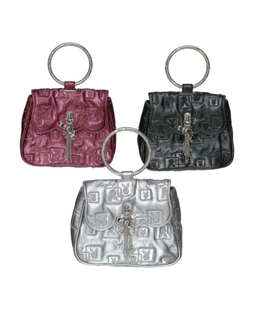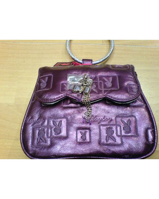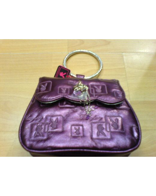 Playboy Handheld Bag Plum/Purple PA1739. perfect for an evening out - wear it on your wrist or handheld, front press busson flap closure, bunny detail, great for carrying your essentials.