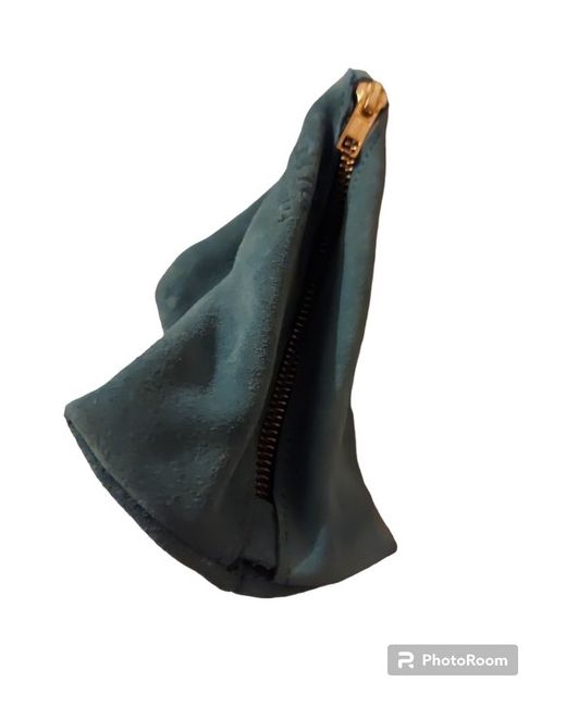 The shape is triangular with a zip down the middle. This Lovely Green Suede purse is really unusual and useful.