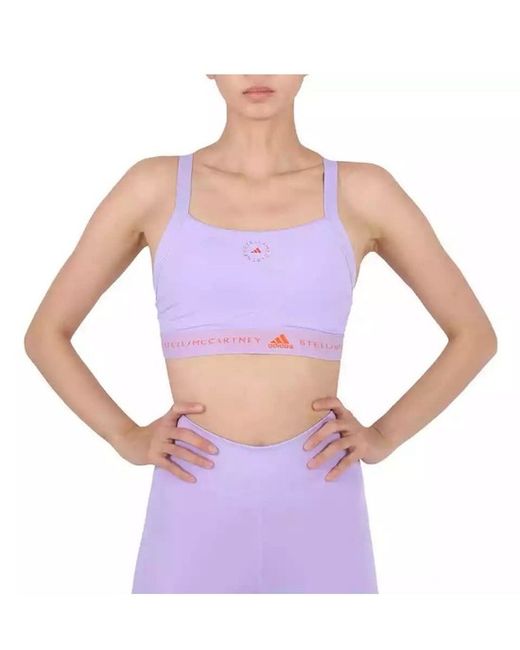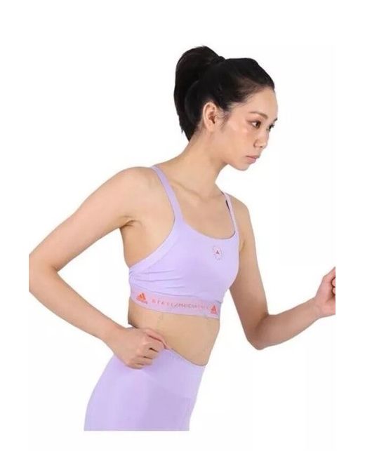 Adidas by stella mccartney ladies undergarments. Fashion category: underwear & undershirts. Adidas by stella mccartney shift purple ruepurpose medium support bra. Made from recycled polyester and elastane, this sports bra features a round neckline, adjustable cross-back straps, elasticated underband, logo print to the front, logo print to the front and finished with adidas by stella mccartney logo. Colour: purple