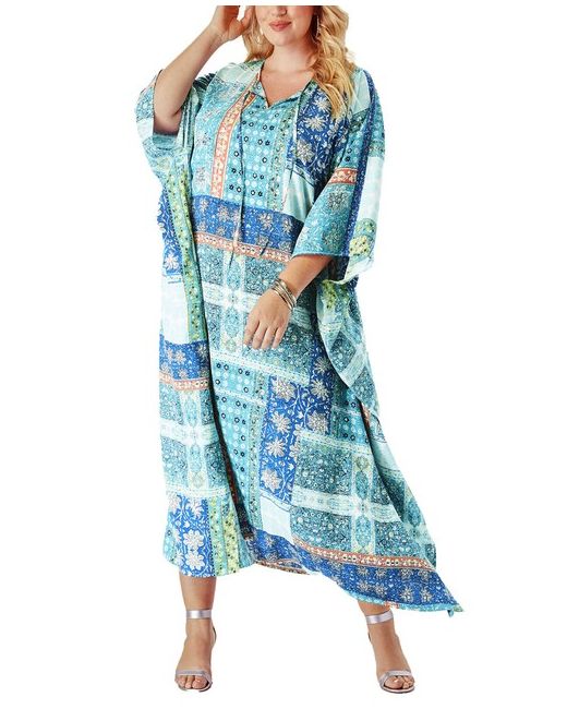 Roamans Tie Neck Kaftan Dress. A dramatic silhouette and tie neck define this wear-everywhere dress. Be comfortable (loose fit), confident and casual in this stunner. care: Machine Wash. USA Size LABEL.