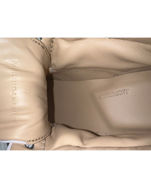 These boots from Jacquemus are a stylish addition to any woman's wardrobe. With a unique design that is both fashionable and functional, these boots are sure to turn heads. Made by a brand known for quality and style, these boots are sure to please even the most discerning fashionista. Crafted with attention to detail, these boots are perfect for any occasion. Whether you're dressing up for a night out or simply running errands around town, these boots are sure to keep you comfortable and stylish. With a versatile design that is both modern and timeless, these boots are a must-have for any fashion-forward woman.