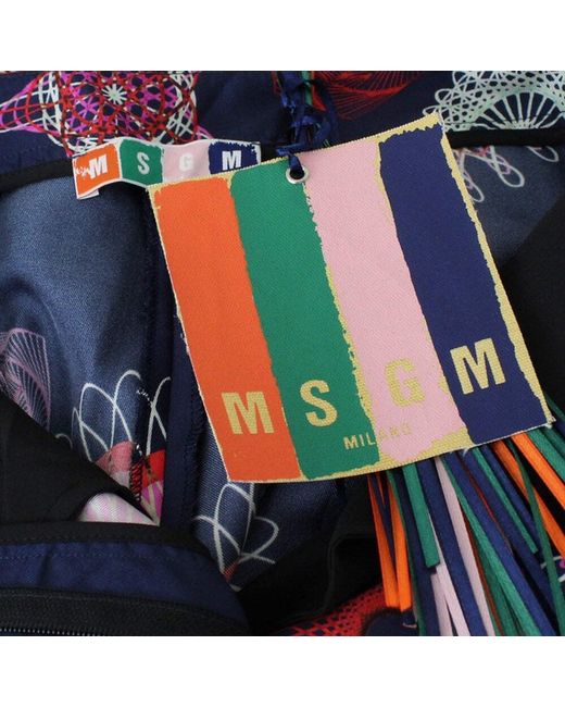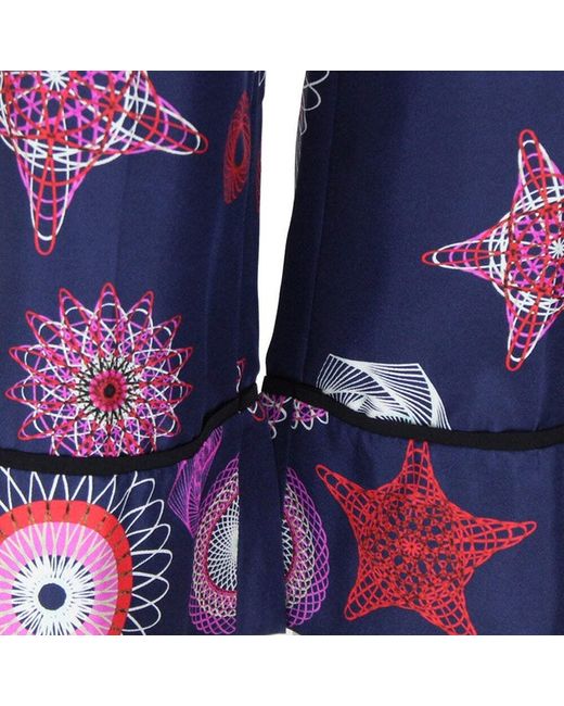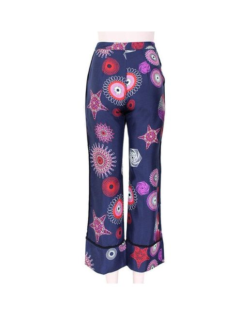 MSGM Trousers MSGM Spirograph Printed Silk TrousersColour: Navy blue, pink, white, grey and redMade in ItalyMaterial: 100% silk. Detailing 100% polyester. MSGM spirograph patterned silk trousersA cropped wide leg with turn-up hemPiping to leg and hemZip, button and hook and eye fastening.