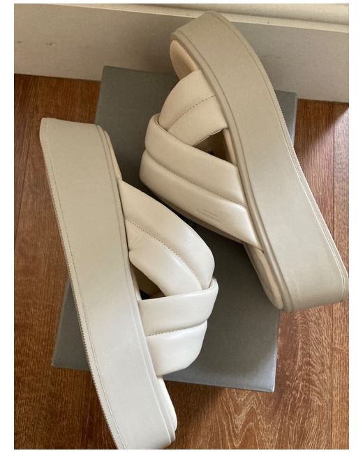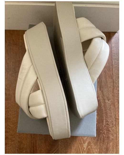 Courtney is the minimal cross strap sandal crafted in off-white leather, with padded cross-over straps and square toes. The solid flatform outsoles measure 50mm. Details include padded insoles. Brand new - never worn. Not the right colour for the outfit.Off-white leatherPadded cross strapsSquare toes50mm flatform outsolesPadded insolesFor long-lasting care: use shoe cream and protecting spray to ensure a great condition for the shoes.Heel height: 50 mm