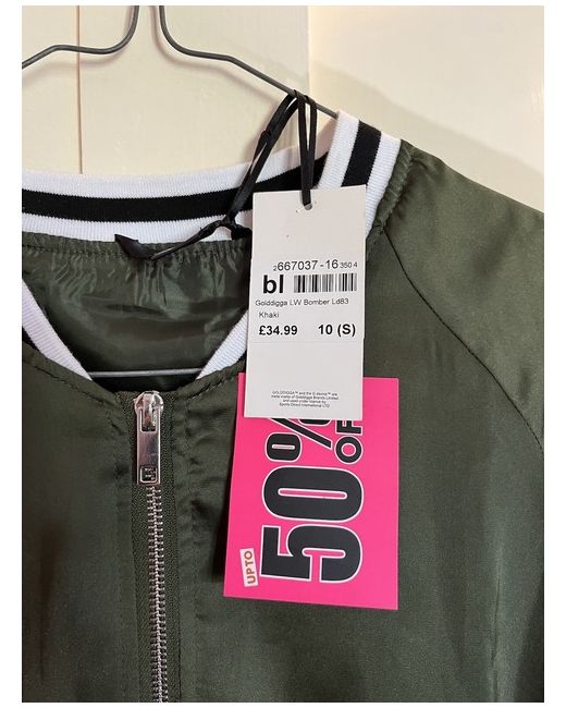 Goldigga khaki bomber jacket size 10. Bought it a few years ago but have never worn it as I don’t like the fit of it on me. Only ever tried on. Lovely lightweight jacket.