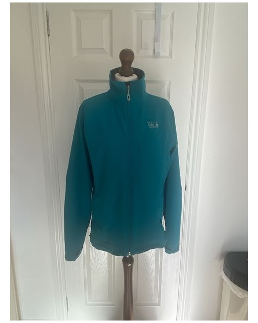 Crafted for the casual outdoor enthusiast, this Mountain Hardware women's jacket is a blend of functionality and style. The jacket features a durable polyester outer shell in a serene blue shade that complements any outfit. Its softshell fabric provides an optimal balance of comfort and protection, making it an ideal choice for your weekend hikes or casual city outings. The piece is designed with a regular fit in size large, ensuring ample room for movement. It boasts a zip closure for easy adjustment to changing temperatures. The jacket is not vintage, but it does carry the timeless appeal of a well-made basic jacket, suitable for a variety of occasions and a must-have in any wardrobe.