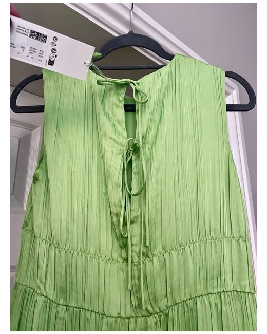 Elevate your wardrobe with this stunning green maxi dress from Arket. Perfect for weddings, parties, and formal events, this sleeveless dress features a straight cut that flatters any figure. The long dress length adds elegance to your look, while the beautiful green colour brings a touch of nature to your style. This dress is designed for women in size 10/EU 38 and true to size. Length (back) just under 49inch or about 124 cm