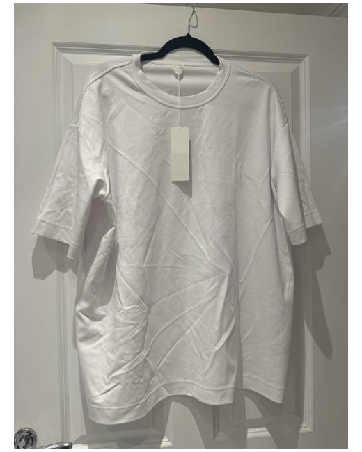 This oversized Arket T-shirt in white is a must-have for any woman's wardrobe. Made from high-quality materials, it is perfect for casual wear and is sure to make a statement. The short-sleeved T-shirt is available in size medium. The T-shirt is ideal for pairing with jeans or leggings, and its loose fit makes it comfortable to wear all day long. Whether you're running errands or meeting friends for lunch, this T-shirt is perfect for any occasion. Add it to your collection today and elevate your casual wear.