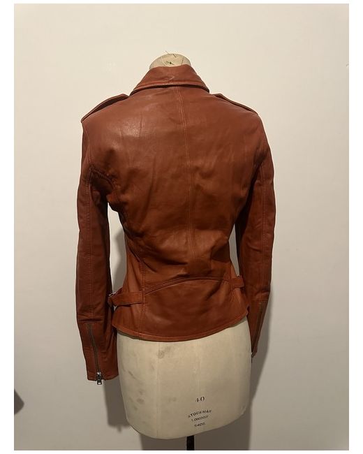 Watching Leather Shearling Belted Jacket Burgundy uk 6 eu 34 RRP2000