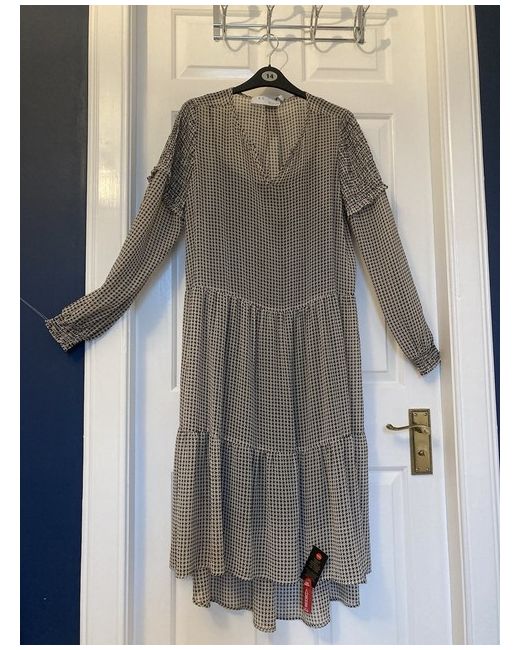 New with tags 2 piece dress with dipped hem at back. Black underskirt with floaty beige and black overdress