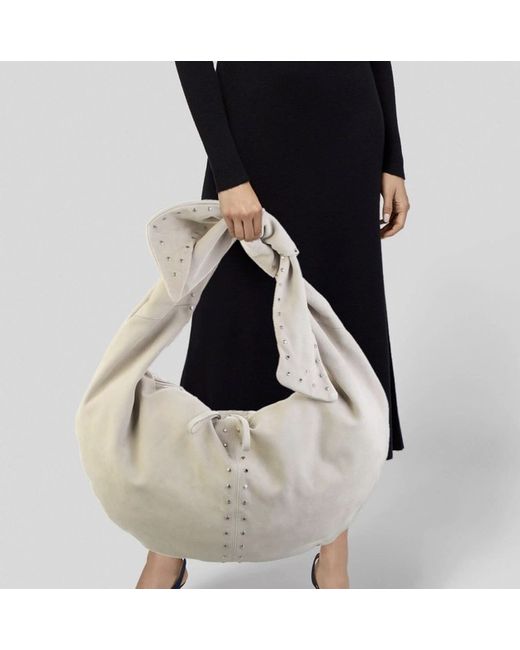 Description Iro Shoulder Bag Grey Suede Silver-Tone Hardware Single Shoulder Strap Studded Accents Unlined Zip Closure at Top Includes Interior Zip Pouch Details Shoulder Strap Drop: 8" Height: 16.5" Width: 26.25" Depth: 1" Item # WIR123996