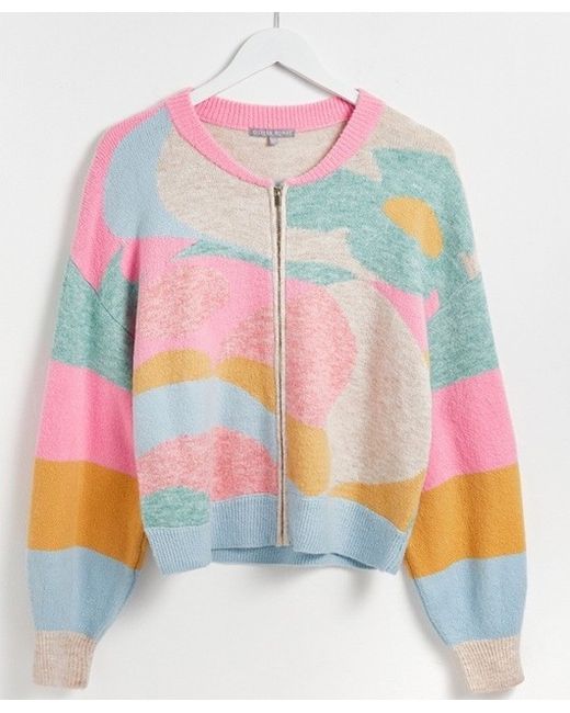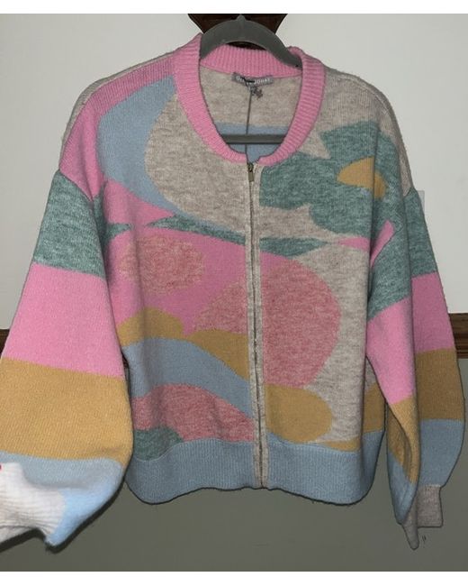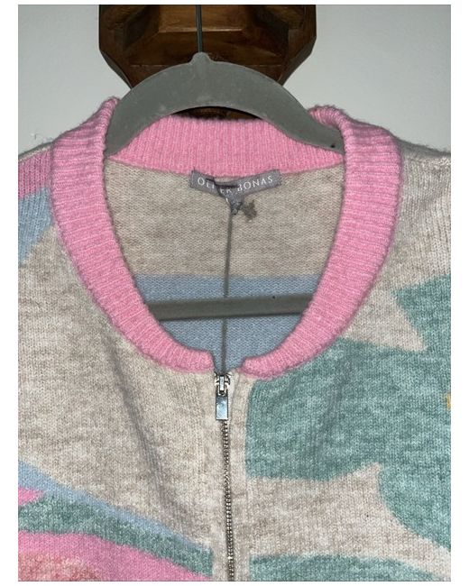 Oliver Bonas Scenic Abstract Multicoloured Knitted Bomber Jacket Uk 10 •NEW• £75 Oversized style Zip front fastening and balloon style long sleeves Pic 1-6 are stock pics but remainder are of actual item for sale Lost 4 stone and no longer fits (gutted)!!