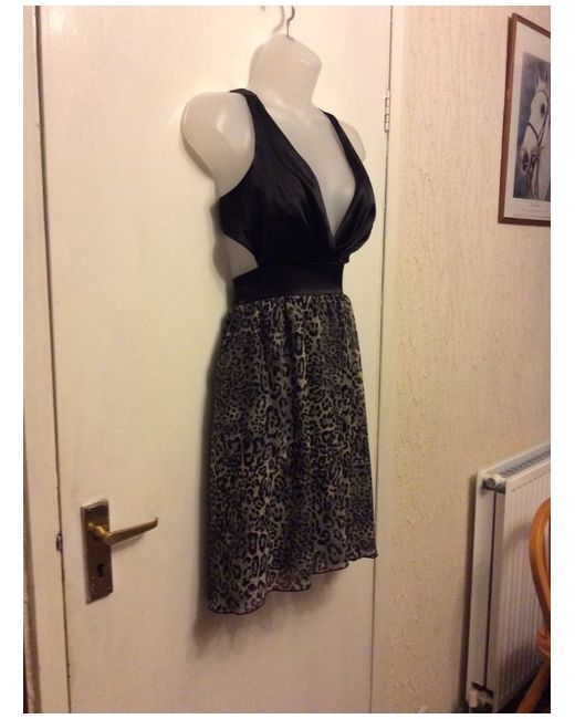 Black mix dress. Silky feel fabric top section. Strapped top. Lined skirt.