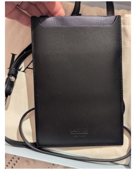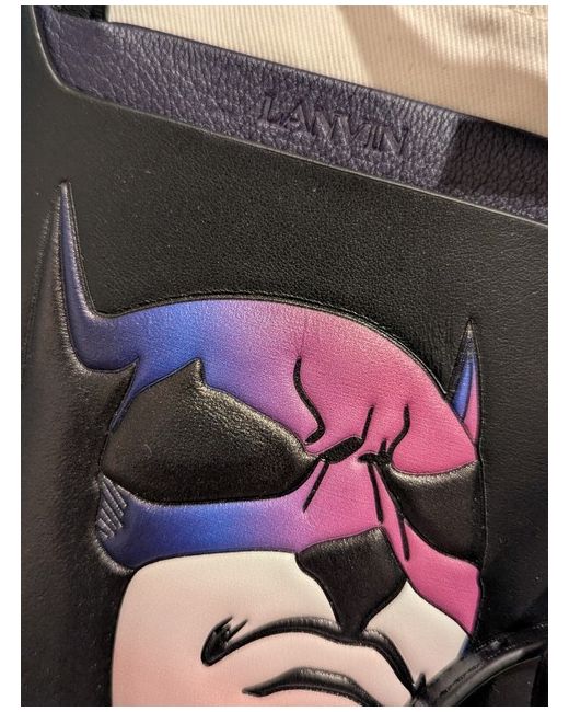This Lanvin Batman Cross body Bag is designed for Unisex Adults. Made of black leather with a leather lining, it features a stylish crossbody design. The bag showcases the iconic Batman character, making it a unique and fashionable accessory for both men and women. Fits mobile phone or small purse. I'm duster bag and box. RRP $499