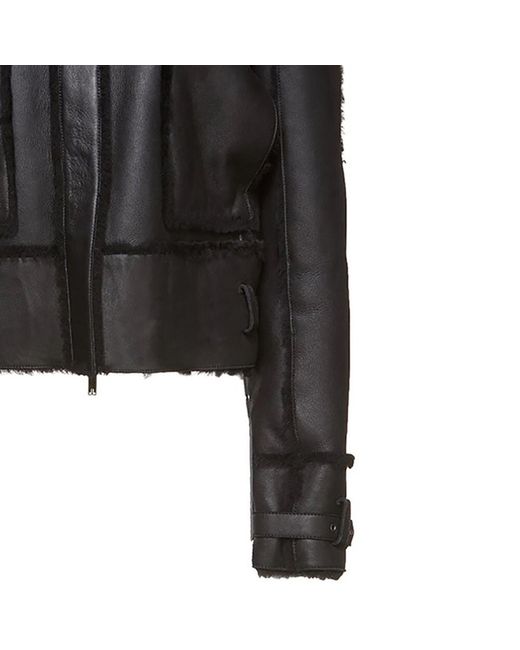 Women's Black Shearling Leather Jacket Lamb Fur Lined 42 RP 4620.00
