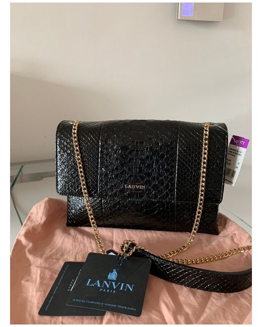 Lanvin Paris Mini Sugar Bag In Python Black Exotic Leather Cross Over Bag. Made In Italy.
