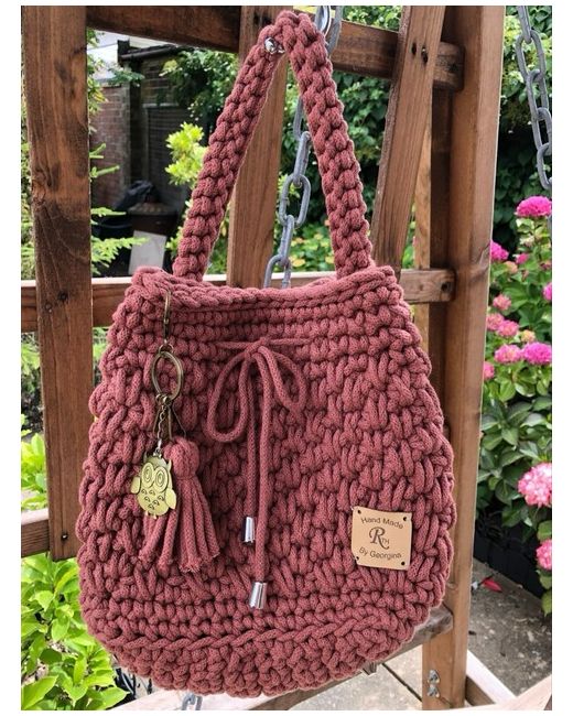 Excellent Christmas present for your loved one 😍 Introducing a beautifully crafted bucket bag from Ruby Twos Handmade. This bag features a drawstring closure on the outside and double handles for convenience. The rust redish brown exterior colour is complemented by crochet accents and a bag charm accessory. Measuring 24cm in width and 17cm in height, this medium-sized bag is perfect for a holiday, bohemian night out or simply for everyday use. The 5mm cotton cord exterior material is durable and the brass hardware gives it a unique touch. This handmade bag is a must-have for anyone who appreciates the art of crafting.
