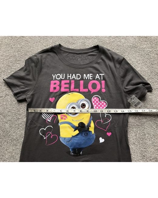 UNIVERSAL STUDIOS AUTHENTIC ORIGINAL LADIES MEDIUM T SHIRT. MINIONS ‘YOU HAD ME AT BELLO’. PURCHASED FROM UNIVERSAL STUDIOS FLORIDA. NEW WITH TAGS. APPROXIMATE CHEST SIZE 30 INCHES. SEE PHOTO. Dispatched with Royal Mail 48 Tracked.