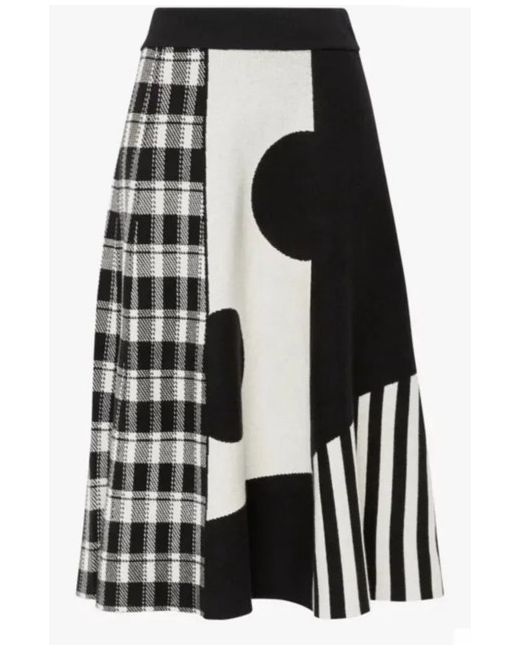 James Lakeland Knitted Patterned Contrast Midi Skirt, Black/White, XL/50