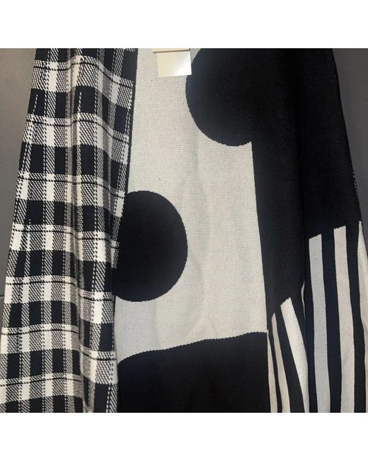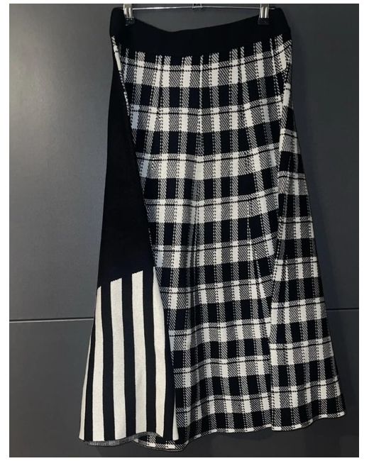 Women's White Knitted Patterned Contrast Midi Skirt Black XL/50