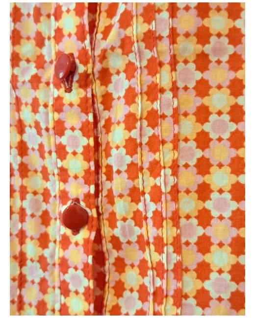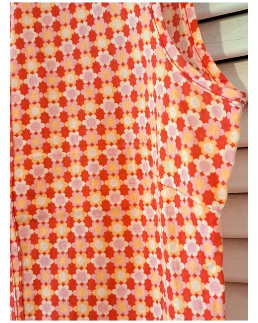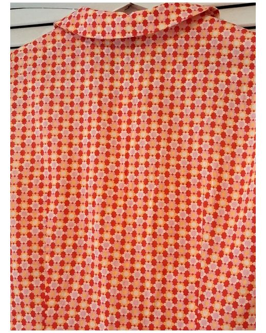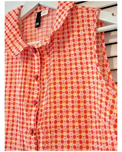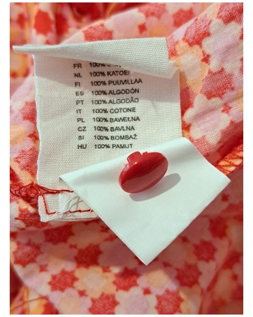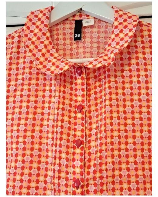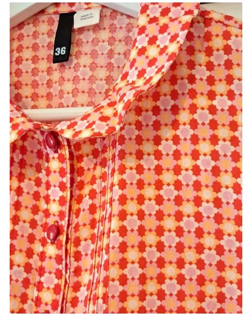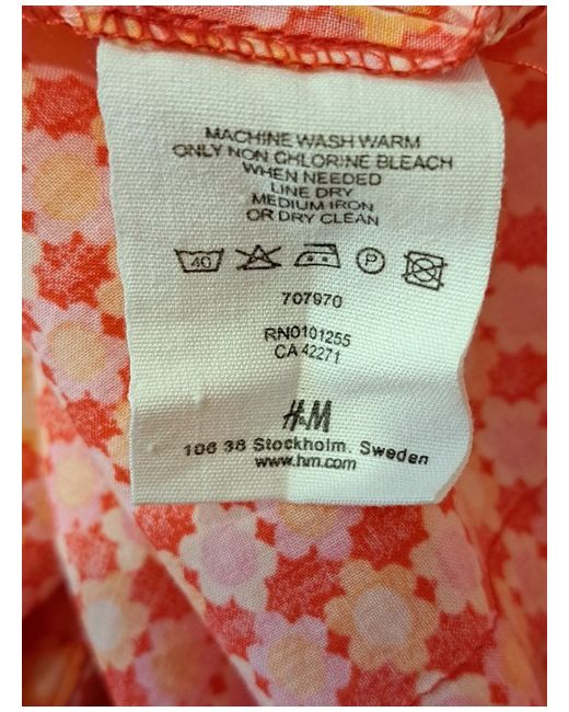 Women's Red H M Pattern Top UK 10 Cotton Trendy Buttons
