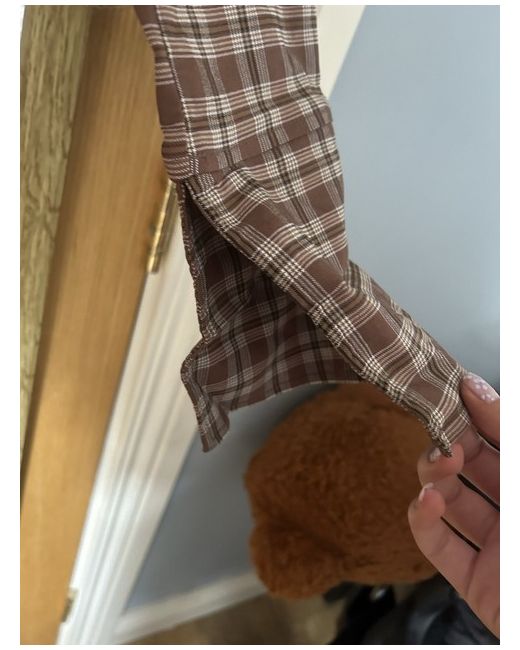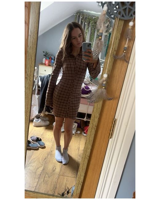brown checkered dress excellent condition, only worn once very comfy, stretchy material all functioning buttons