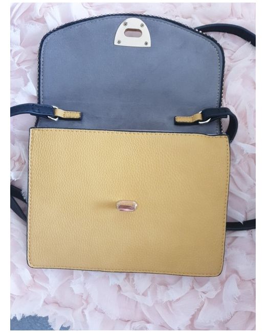 The Bessie CrossBody Bag is perfect for women who are looking for a stylish and practical bag. It is made of mustard and grey faux leather with gold hardware and a black handle/strap material. The bag is small in size, making it easy to carry around. It has a fabric lining material with beige colour, making it more aesthetic and fashionable. Has three compartments inside with the third having a zip for coins and one on the outside