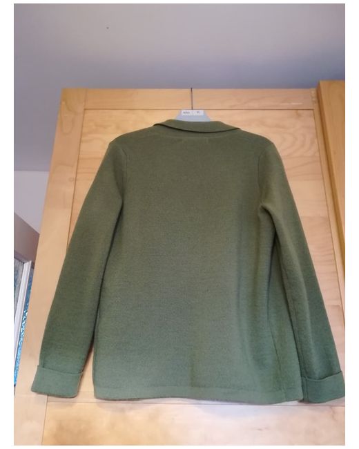 Sage green, casual, unstructured, no fasten, 100% merino wool jacket with 2 patch pockets. New, never worn.