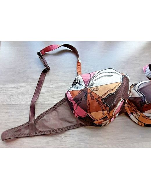 These flowers are mysterious, they could almost be butterflies. The printed flowers also cover part of the underwires and these are picked out with brown stitching. Style 56561. The exact material of the bra is made of 57%Polyamide, 37%Polyester, 5%Polyurethane, 1%Viscose.
