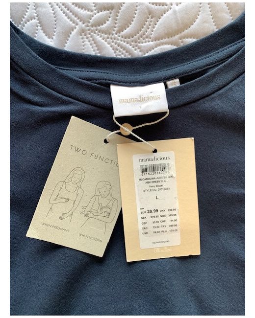 Mamalicious Maternity dress. Two function - for when pregnant and when nursing. Machine washable. Top down to bottom hem = 37".