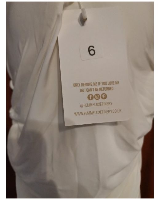 This is a Femme Luxe sleeveless top in white, featuring a V-neckline and a pulled-on style. It has a rushed design made of polyester, suitable for formal occasions like weddings and parties. The top is a size 6 in regular fit for women.